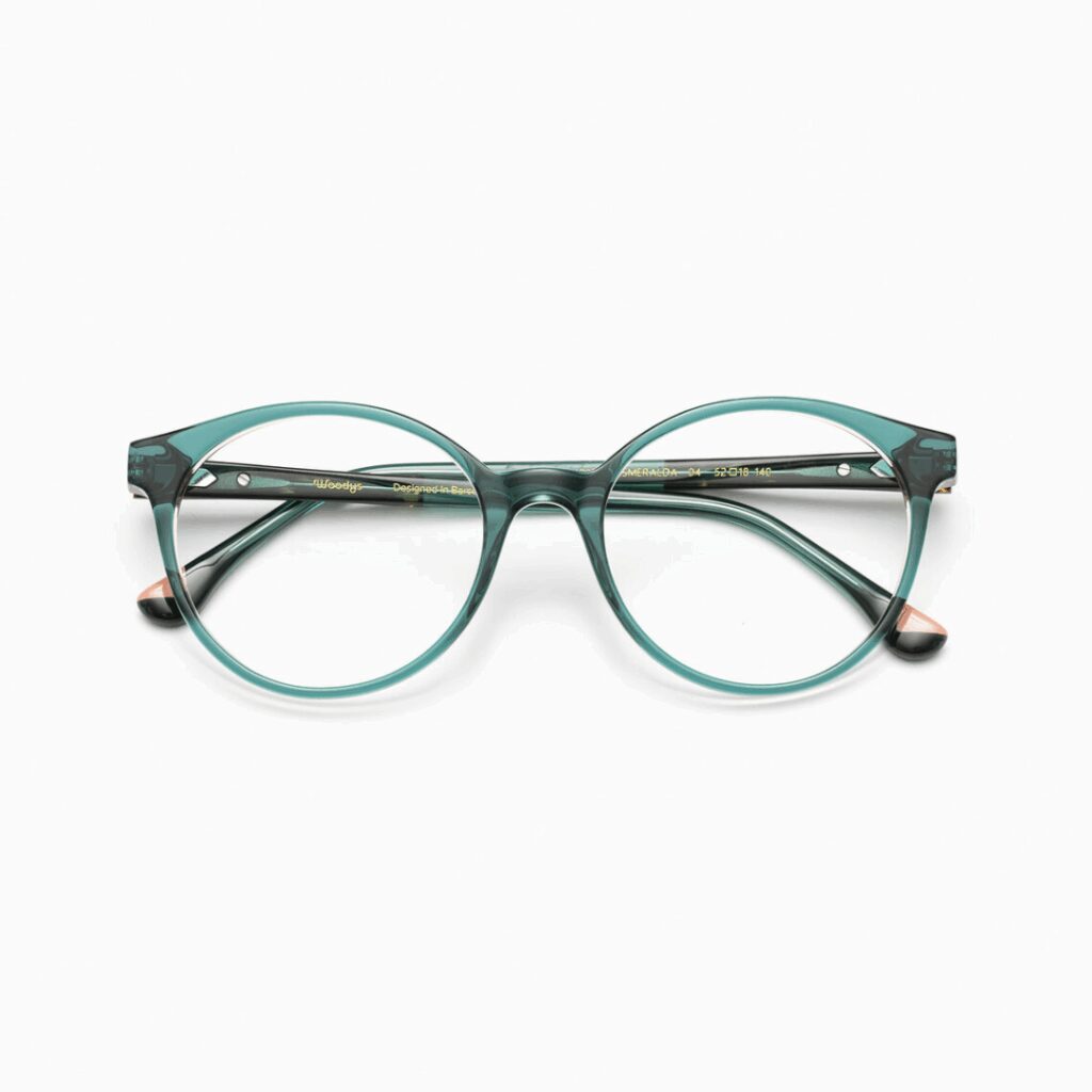 El modelo Esmeralda, diseñado para mujer, está fabricado en acetato de alta calidad con detalles metálicos finos. Su diseño elegante y contemporáneo resalta la personalidad con un toque distintivo.